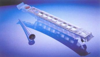 VIDAS is a multi-parameter automated immunoanalyser. It comprises an analytical module, a computer and a printer. The analytical module automatically performs all stages of the analysis, including printing out the full results. It contains five sections, each accepting 6 tests, and can handle 60 tests per hour. Thanks to its speed of reaction and sectioned architecture, VIDAS? is the ideal system for handling series of analyses and urgent tests. The computer module is used to manage and print out the results. It can handle up to four analytical modules simultaneously, giving the system a capacity of 240 tests per hour. mini VIDAS is a compact version of the VIDAS system, with a built-in computer, keyboard and printer. It has 2 independent sections each accepting 6 tests, and can process up to 12 samples simultaneously. The VIDAS technology is reliable in all situations, as confirmed by our operation mini VIDAS? on Mont Blanc. With a range up to 70 assays VIDAS tests have applications in clinical diagnostics and industrial microbiological testing. VIDAS test VIDAS tests use ELFA technology (Enzyme Linked Fluorescent Assay), associating enzyme marking and fluorescence measurement. It is used on the VIDAS and mini VIDAS automated analyzers. Based on an inter-sample anti-contamination principle, VIDAS? tests are presented in individual, ready-to-use form. They contain a SPR and a strip : the SPR (Solid Phase Receptacle) is the solid phase of the reaction. It is a disposable item, and acts as a sampling needle. This concept eliminates potential inter-sample contamination. the strip contains all the reagents, ready for use. At each stage in the immunoanalysis, the SPR repeatedly takes up the reagent and transfers it into the various wells of the strip, through to the final stage of the analysis. The last well is the reading well, where the final intensity of the reaction is measured by fluorescence. VIDAS menu for industrial testing VIDAS offers 8 assays for the rapid detection of pathogens in food products and environmental samples : VIDAS Listeria, for detection of Listeria (validated by the AFNOR *) VIDAS Listeria monocytogenes, for specific detection of Listeria monocytogenes (validated by the AFNOR *) VIDAS Salmonella, for detection of Salmonella (validated by the AFNOR *) VIDAS ICS, for salmonella immunoconcentration VIDAS Staph enterotoxin, for detection of Staphylococcus A, B, C1, C2, C3, D and E enterotoxins VIDAS Campylobacter, for detection of Campylobacter VIDAS ECO, immunodetection of the potential presence of E.coli O157 using an optimized protocol in less than 24 hours. VIDAS ICE, immunocapture to simplify the confirmation stage of the presence of E.coli O157 which is particulary delicate using the conventional method and to considerably reduce waiting time by avoiding time-consuming culture stage |